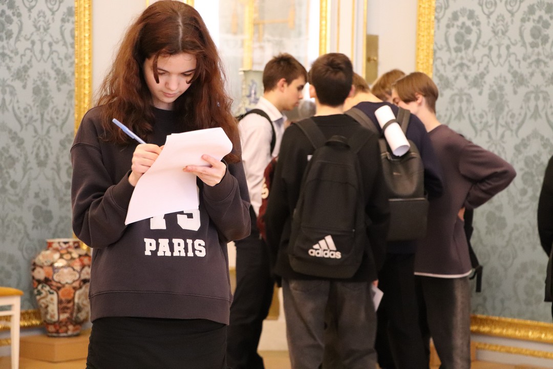 Восьмиклассники и десятиклассники выполняли заданиях, в ходе которых должны были вспомнить интересные факты, услышанные на экскурсии 1 сентября.