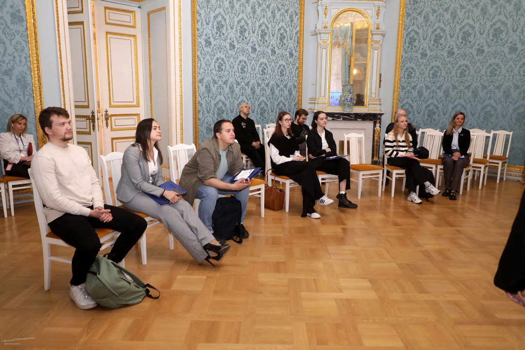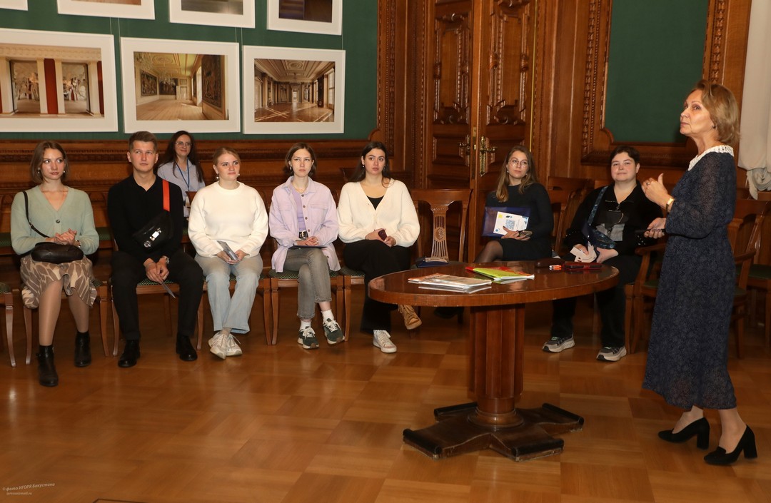 Благодаря рассказам заведующей Библиотеки Дворца Светлане Мангутовой молодые специалисты узнали об истории и «тайной комнате» Библиотеки, а также о правилах пользования библиотечным фондом, вариантах сотрудничества и совместной организации мероприятий.