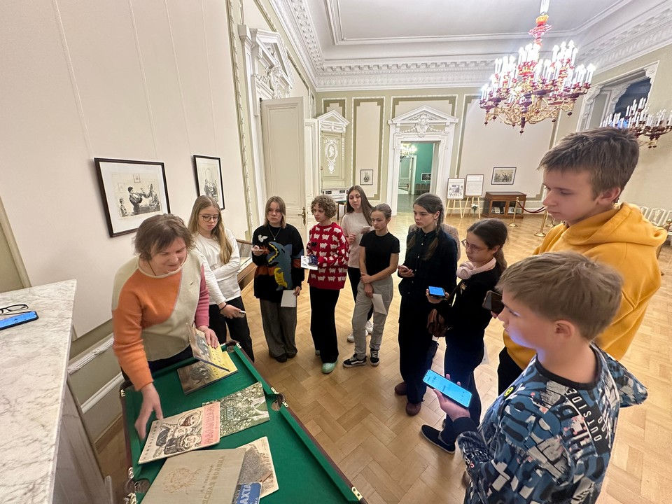 Все полученные знания школьники сразу же применили на практике. В Торшерной гостиной Аничкова дворца сейчас открыта выставка литографий Алексея Пахомова, приуроченная к 125-летию со дня рождения художника.
