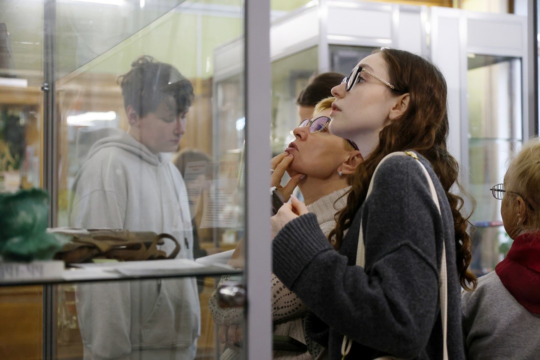 Перемещаясь в пространстве экспозиции, ребята внимательно рассматривали экспонаты в витринах, знакомились с музейными этикетками и информацией на стендах.