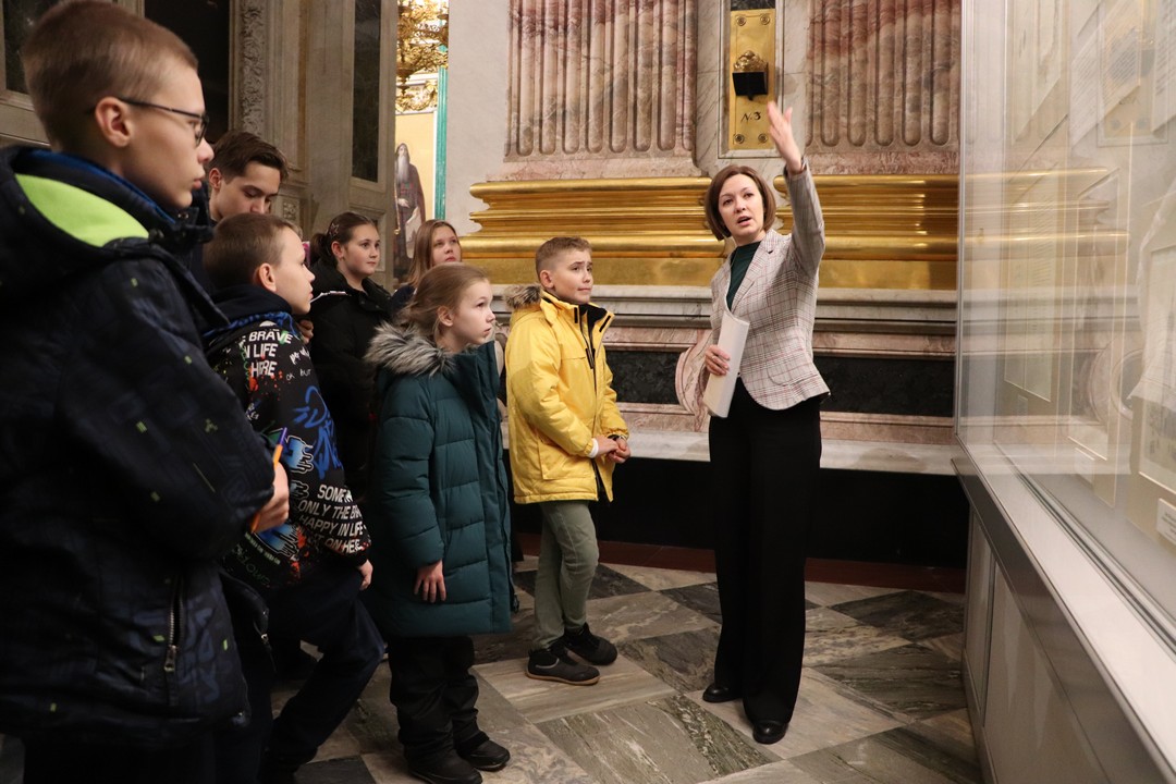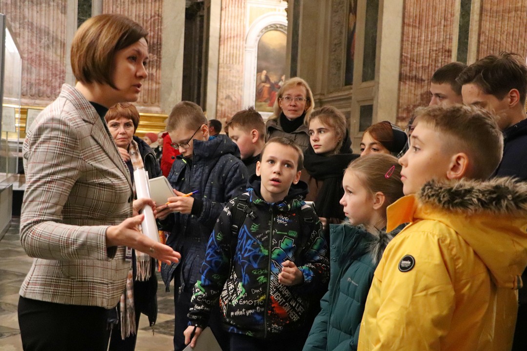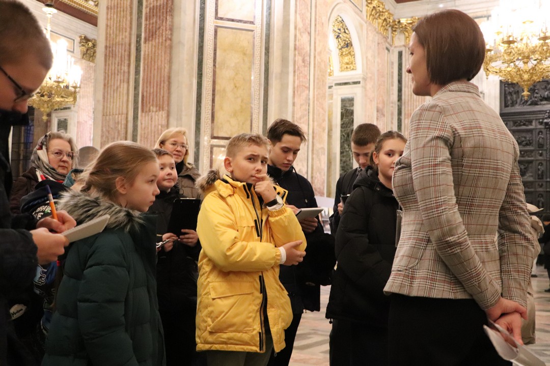 В Государственном музее «Исаакиевский собор» методист сектора музейной педагогики Кристина Викторовна Иванова познакомила ребят и педагогов с особенностями проведения экскурсии в Исаакиевском соборе, поделилась своим опытом и рассказала, на что стоит обратить внимание во время экскурсии: как взаимодействовать с экскурсантами, как поставить группу, чтобы всем было видно объект рассказа и многое другое. Мастер-класс также прошёл в формате экскурсии, поэтому ребята узнали не только теорию и практику экскурсоведения, но и познакомились с историей строительства Исаакиевского собора.