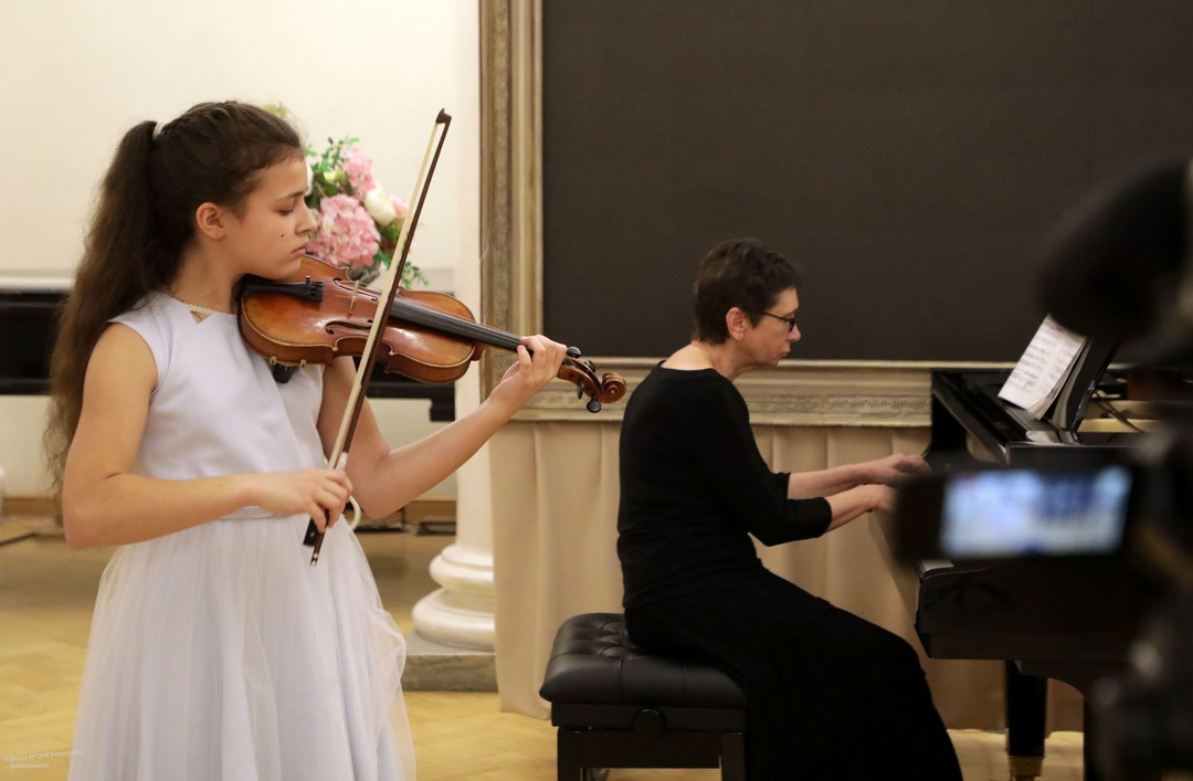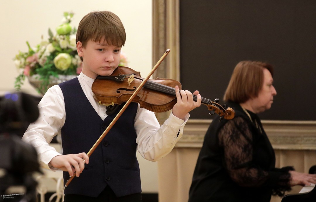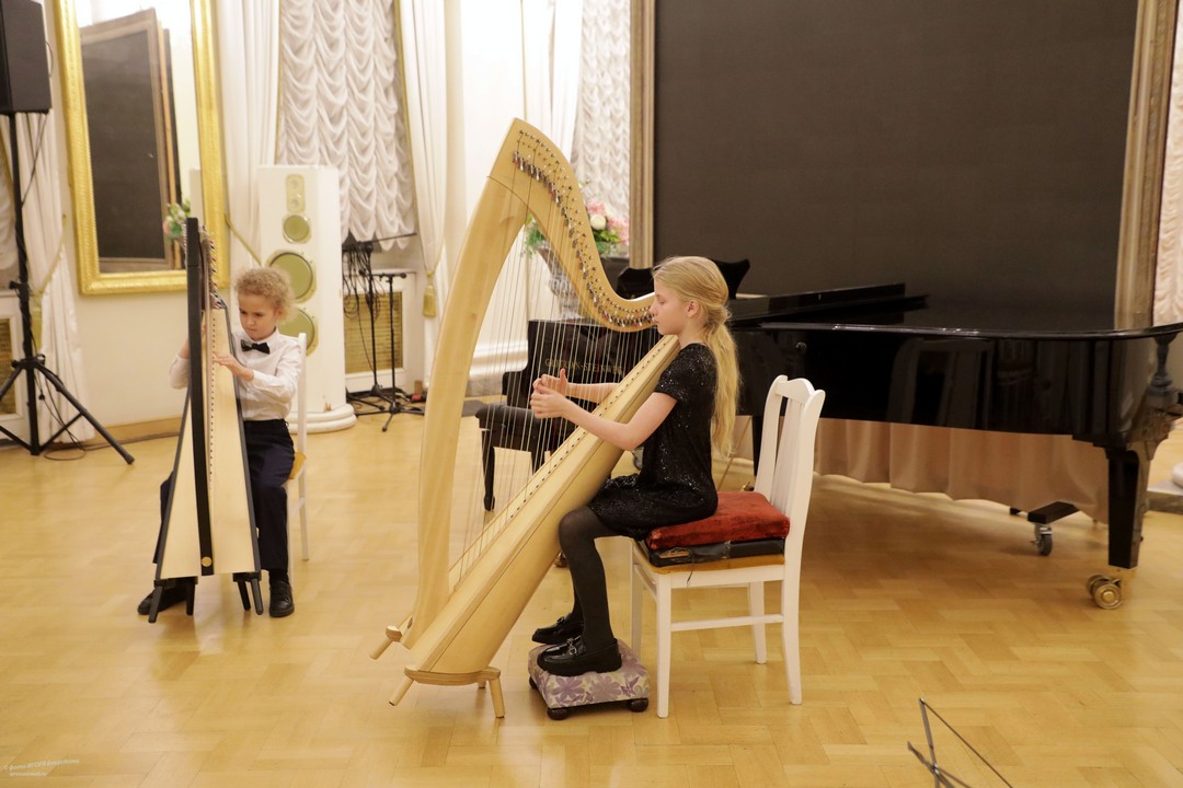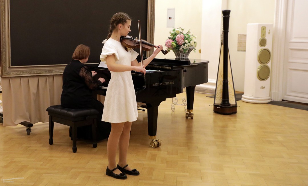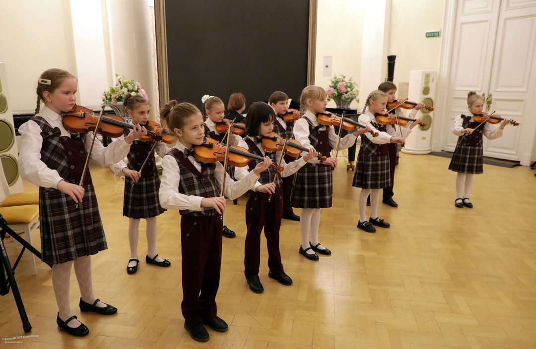 Юные музыканты представили произведения классиков и современников, демонстрируя разнообразие музыкального жанра: нежные серенады, изящные менуэты, романтические вальсы, задумчивые ноктюрны и проникновенные адажио заполнили пространство исторического зала своими мелодичными звуками. Солировали виртуозы струнных инструментов — скрипачи, виолончелисты, арфисты.